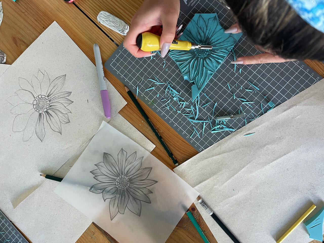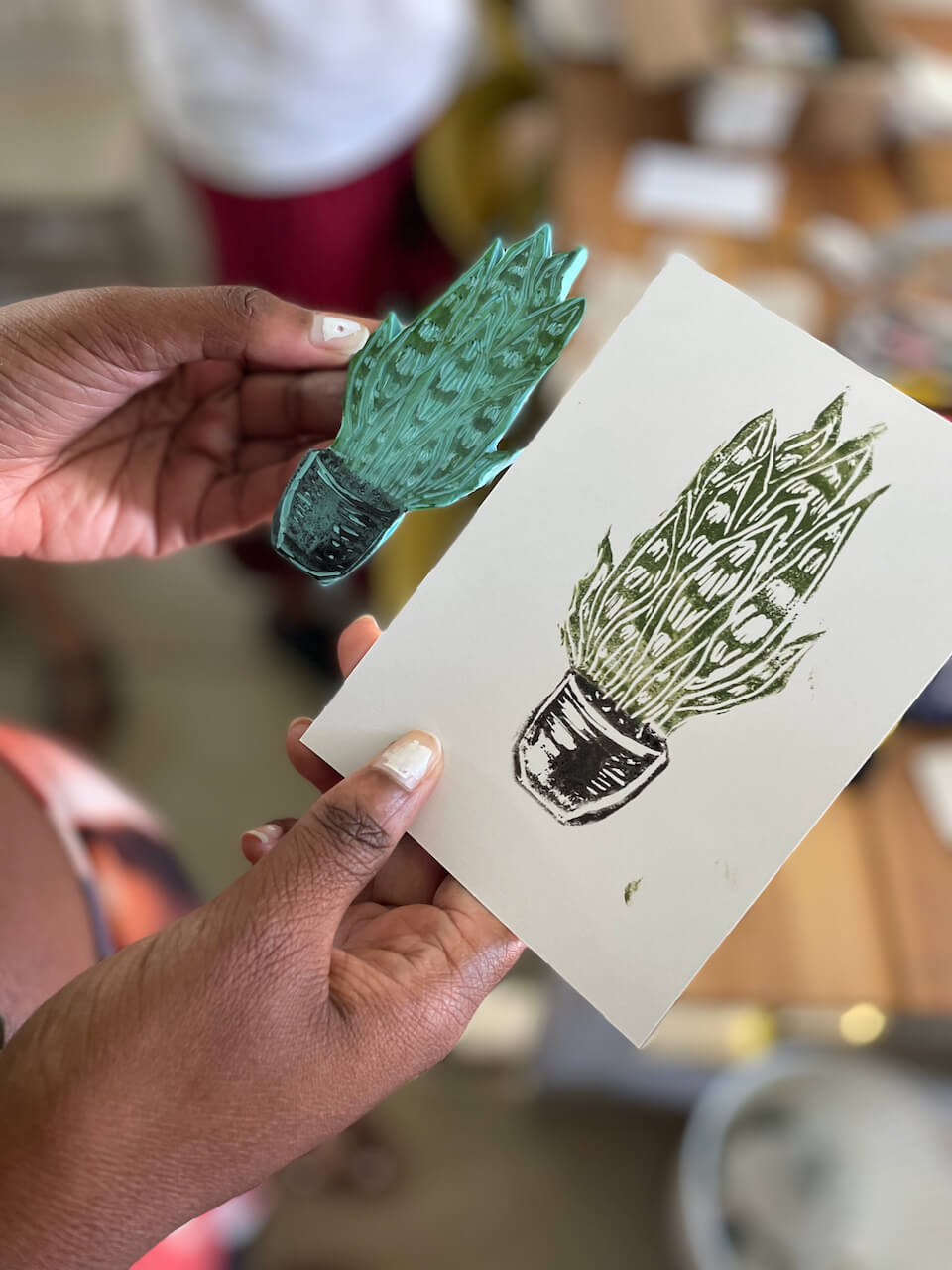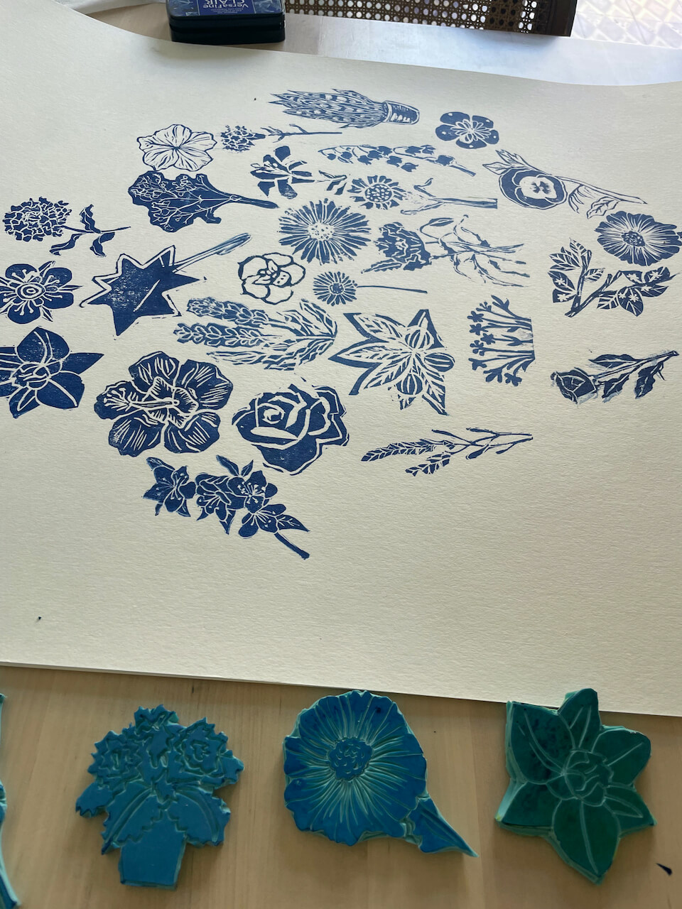 Over two mornings in July people were invited to take part in an open printmaking event where they discussed and created plants or flowers of significance to them in response to the exhibition ‘Montra em Execução´ at The Living Room in Coimbra.